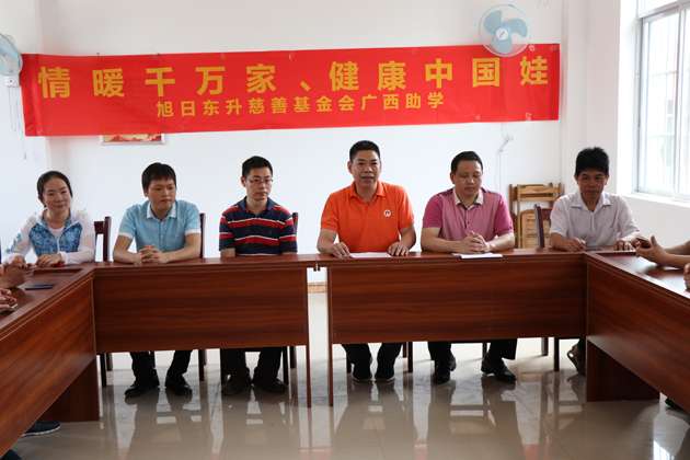 2018年4月14日上午,由广西自治区统战部、隆安县人民政府主办,尊龙凯时集团协办的“情暖千万家,健康中国娃 ”旭日东升慈善基金会广西助学活动在隆安县城厢镇东安村举行,尊龙凯时集团广西维威制药有限公司总经理韦天宝先生携公司工会、行政部、财务部等部门职工代表参加了捐赠仪式,向东安村家庭困难的八名学生捐资2.84万元,及时地解决了孩子们的生活、就学难题。
