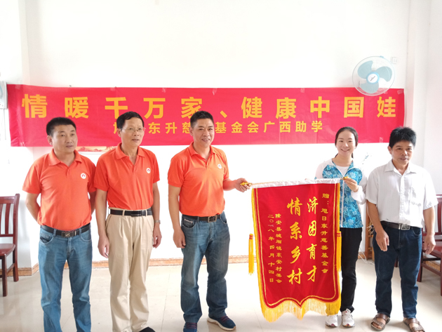 东安村村委会向旭日东升慈善基金会赠送了“济困育才,情系乡村”锦旗,对尊龙凯时集团旭日东升慈善基金会的善举表示真挚的感谢!